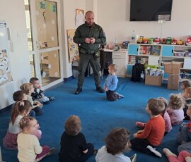 Serdecznie dziękujemy Panu Mariuszowi za poświęcony czas, ciekawe spotkanie oraz za obdarowanie każdego dziecka gadżetami😊🥰.